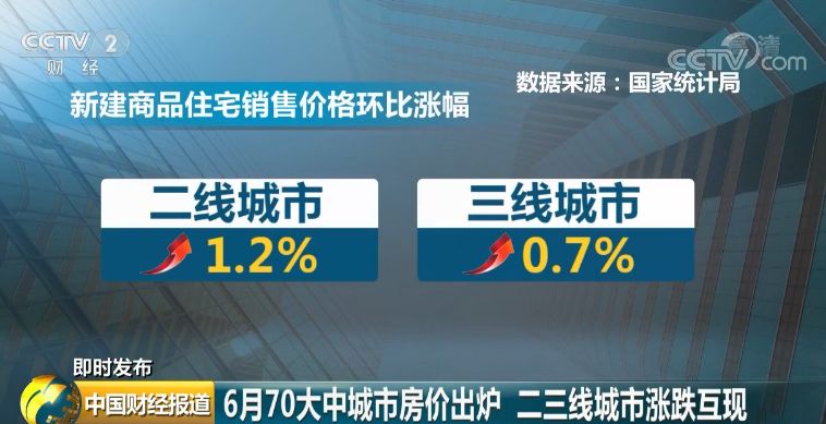 17日,国家统计局最新发布了6月份70个大中城市新建商品住宅房价数据。数据显示,一二线城市新建商品住宅环比涨幅有所上涨,三线城市上涨势头得到抑制。