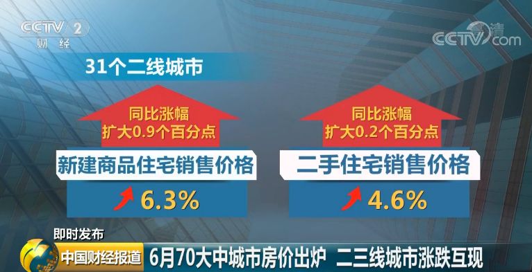 31个二线城市新建商品住宅和二手住宅销售价格分别上涨6.3%和4.6%,同比涨幅比上月分别扩大0.9和0.2个百分点。