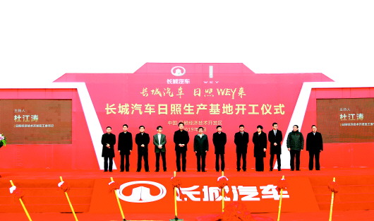 1月18日,长城汽车日照生产基地开工仪式在日照开发区举行。该项目包含冲压、焊装、涂装、总装全工艺链生产线,设计年产能30万台,主要生产长城旗下高端品牌WEY系列产品,是日照市迄今引进的最大汽车产业项目。