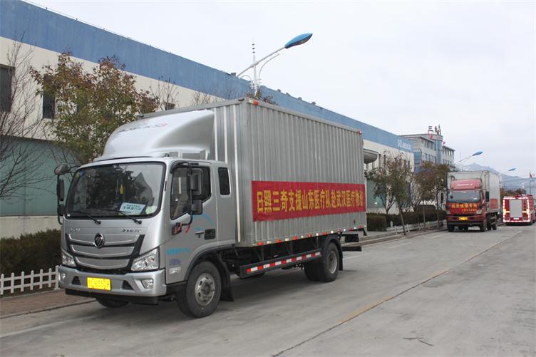 日照汛:近几天以来,运送支援灾区得医疗物资络绎不断。26日夜晚,日照三奇医疗卫生用品有限公司院内直接运往湖北武汉的三万只口罩,通过国药集团物流发往武汉。同时,还有更多运输车辆整装待发。