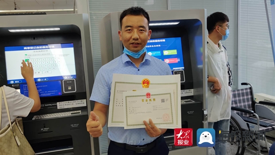 “现在智能化的设备真是太方便了,我在这个自助设备上填好基本信息,勾选了几个项目,对着摄像头刷了脸,不到5分钟就领取到营业执照了,真正的秒批,很贴心!”8月14日,市民魏先生在日照市东港区政务服务大厅领取了全市首张“秒批秒办”个体工商户营业执照。