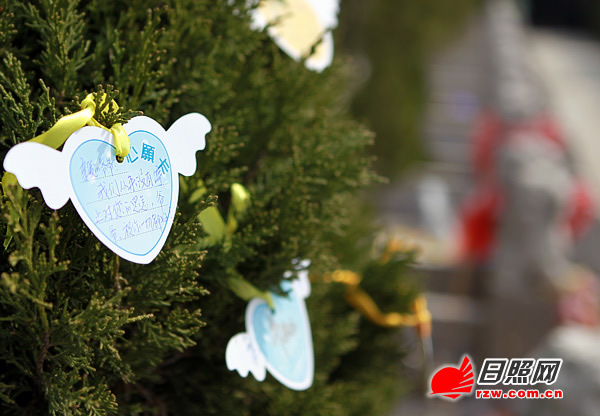 ■舞动的黄丝带 黄丝带代表着哀悼、思念、祈福、希望,是亲人离散后的求助标志,也是为亲人祈祷的祝福标识。这种新型的祭奠方式,受到祭扫者的普遍欢迎。人们入园都会取两条黄丝带,轻轻地系在墓碑前的松柏树上。黄丝带随风舞动,仿佛诉说着人们对故去亲友的思念。松柏上的黄丝带与市民手腕上佩戴的手链在微风吹拂下轻轻舞动,成为清明期间的特有“表情”。 ■心愿卡寄语 黄丝带表示永恒的思念和牵挂,心愿卡则可以对亲人表达最真挚的想法。今年千秋苑印制了2000张心愿卡片,免费发放给祭扫的市民。 “妈妈,我们对您的思念从来没有停止过,祝你在天堂里平安快乐。”“亲爱的爷爷,我们从来没有停止对您的思念,爷爷,祝你一切都好”“女儿,妈妈相信会有另外一个世界,而你是那个世界的公主,妈妈好想你啊……”