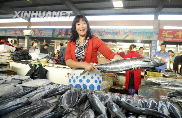 9月19日,山东省日照市金阳海货批发市场人头攒动,交易红火。  自9月初黄海、渤海开渔后,出海捕捞的渔船陆续满载而归。在中秋节、国庆节到来前夕,山东日照各海货交易市场货源充足,供销两旺,一派繁忙景象。  新华社发(朱元理 摄)
