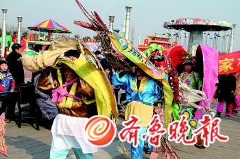◥21日,日照市元宵节民间文艺表演赛在太阳广场拉开帷幕,将持续到正月十六。 (王西江 王超)