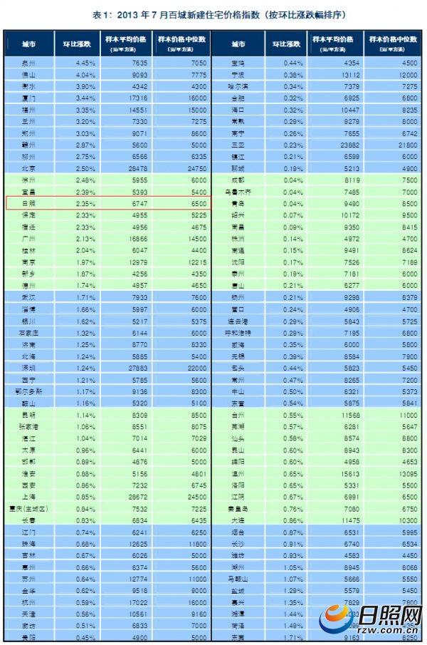 另外,徐州、宜昌、日照等51个城市环比上涨,其中徐州、宜昌、日照等7个城市涨幅在2-2.5%之间。