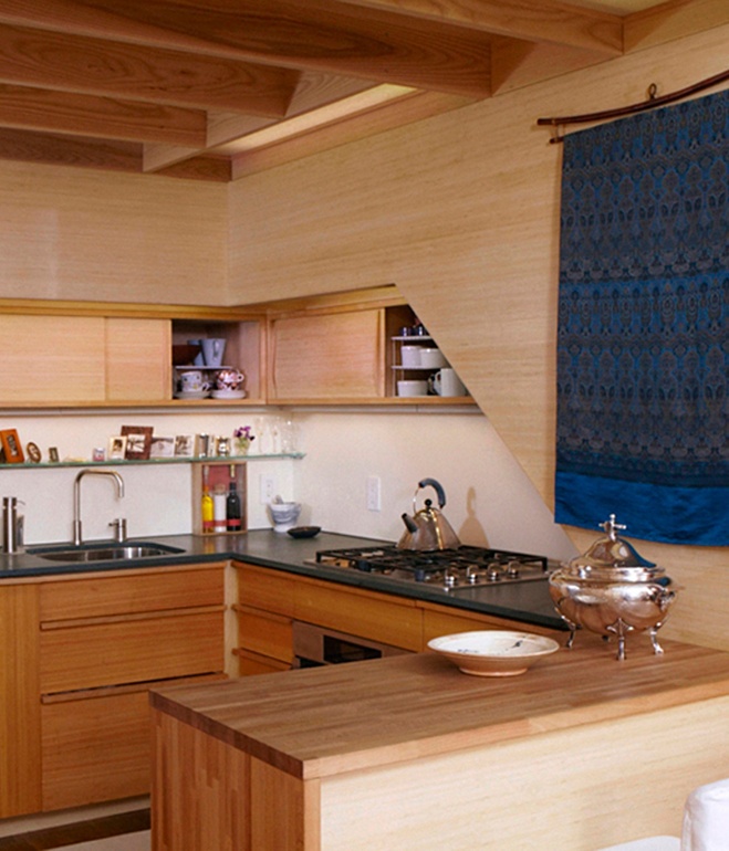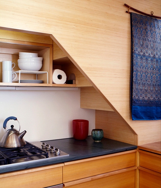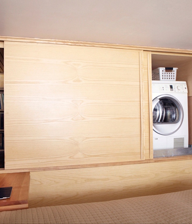 空间面积虽小,但在于合理有效的安排。打造立体空间是小户型家居一贯的做法,例如《小户型有大智慧——46平米家居》,《北欧生活之居 经典小户型公寓》,《森林系的小木屋》都采用了类似的做法,将有限的空间往纵向拓展,将空间一分为二,这样就能拥有更多的使用面积,就像我们介绍的这一例,搭建了一个实木结构的立体空间,下面是厨房与卫浴,上面为卧室与收纳间,然后多余的空间就用来工作及生活起居。虽然空间非常紧凑,但整体效果还不错,在快节奏的城市空间里能拥有这么一片属于自己的小空间,也是种幸运的事儿。