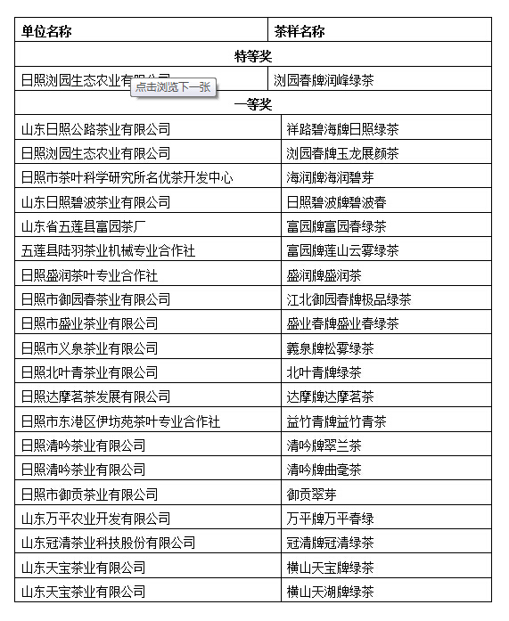 第十一届“中茶杯”全国名优茶评比(第一阶段)获奖名单(日照绿茶获奖企业和茶样名称)