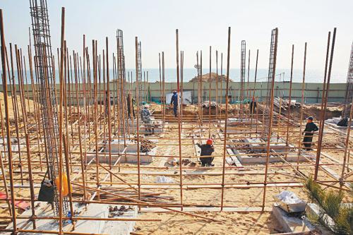 3月1日,在有日照“大客厅”的万平口景区,工作人员正在进行景区完善提升施工。