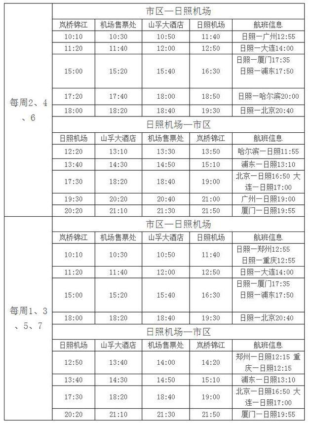【附:日照机场夏秋航季航班时刻表、日照机场2016年夏秋季机场巴士时刻表】