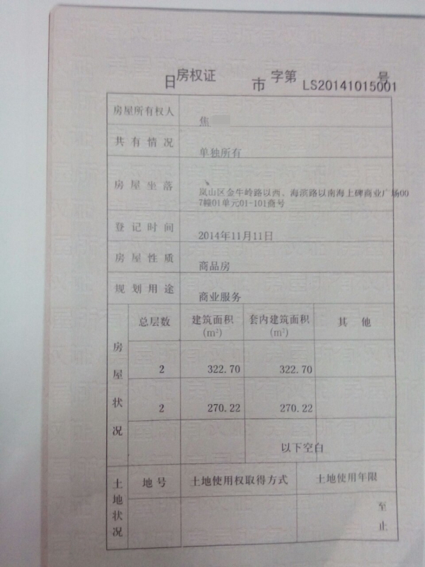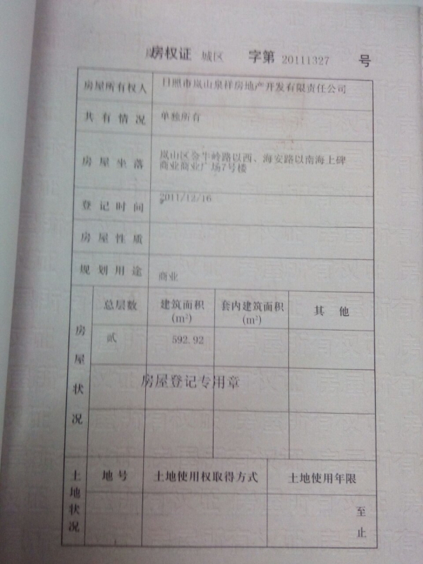 日照岚山泉祥房地产开发有限责任公司。开发的海上碑商业广场第7栋商铺《独栋》,原购房合同面积为446平方米,《规划局规划446平方米》,开发商把政府规划446平方米的建筑改建成592.92平方米。2PB山西信息港-山西省重点信息门户