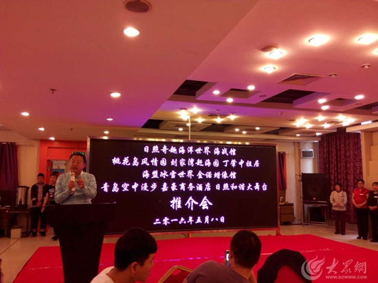8日上午,日照市旅游景区推介会在嘉豪大酒店来开帷幕。日照奇趣海洋世界、海战馆、桃花岛风情园、刘家湾赶海园、丁肇中故居、海盟冰雪世界、金诺蜡像馆、空中漫步、日照和谐大舞台等多家景区“抱团出击”,联合推出日照旺季热门景点套票、特价旅游线路和精彩的节目表演,将现场气氛推向高潮,掀起了一阵日照旅游风。