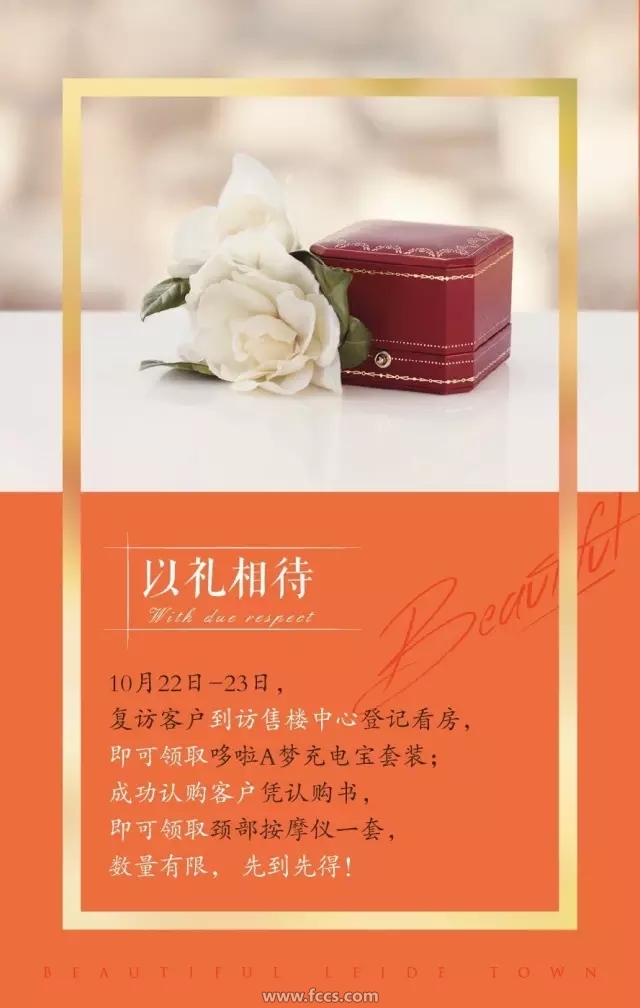 10月22日—23日,复访客户到访售楼中心登记看房,即可领取哆啦A梦充电宝套装;成功认购客户凭认购书,即可领取颈部按摩仪一套。