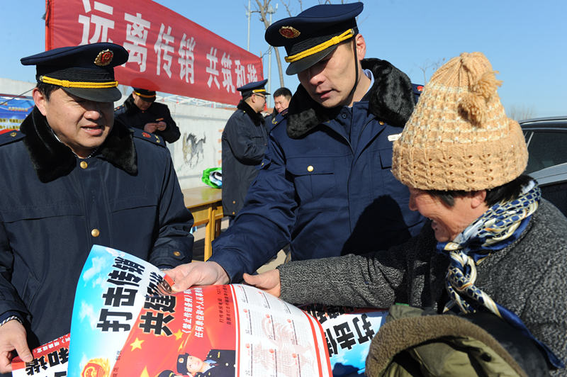 近日,为确保群众过一个欢乐祥和、健康文明的春节,日照市工商局联合东港区工商局在荷疃农资市场开展“远离传销、共筑和谐”宣传活动。活动期间,执法人员向群众发放了2000余份法律法规宣传资料,现场解答群众疑问,阐明传销危害,教改群众识别传销行为。  通讯员 蔡明智 窦文煜 张玉玲