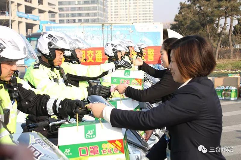 爱心企业在行动,日照三奇医疗卫生用品有限公司为市交警直属大队近300名交警提供优质防雾霾口罩近10万只,为交警在这个寒冬里的值勤环境提供暖心支持和后勤保障。