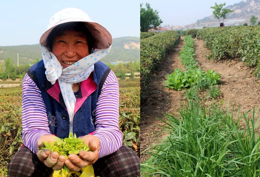 “东边还种植了土豆、韭 菜、小白菜等蔬菜,茶地忙累了不想去菜园摘菜,这样不用走多远就可以回家做饭了”尹大姐说。